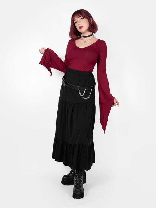 XS S M L XL XXL 3XLBordowa bluzka z szerokimi rękawami Wisteria