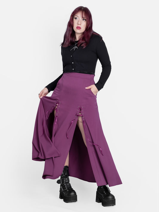XS S M L XL XXLFioletowa spódnica midi z wiązaniem Lacrimosa