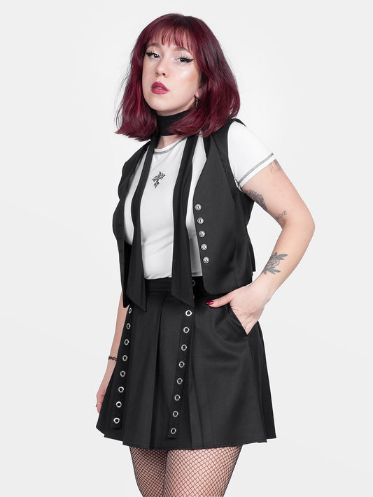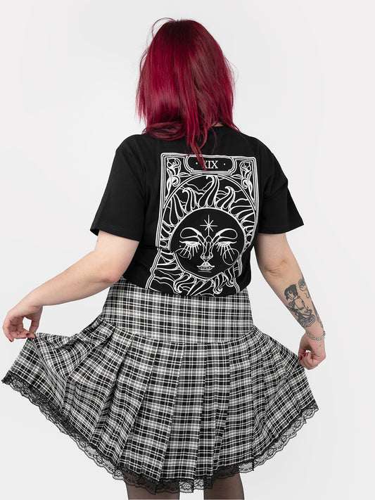XXS XS S M L XLBlack and white plaid pleated skirt with lace