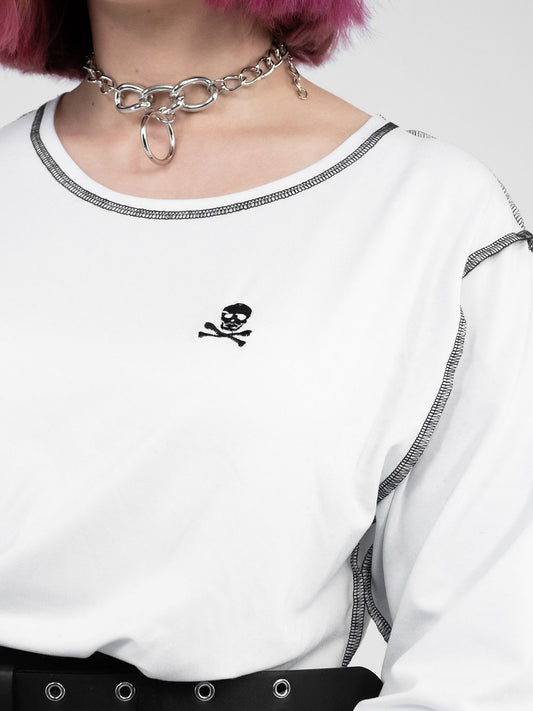 M L XL XXL 3XLSkully Embroidery Longsleeve White
