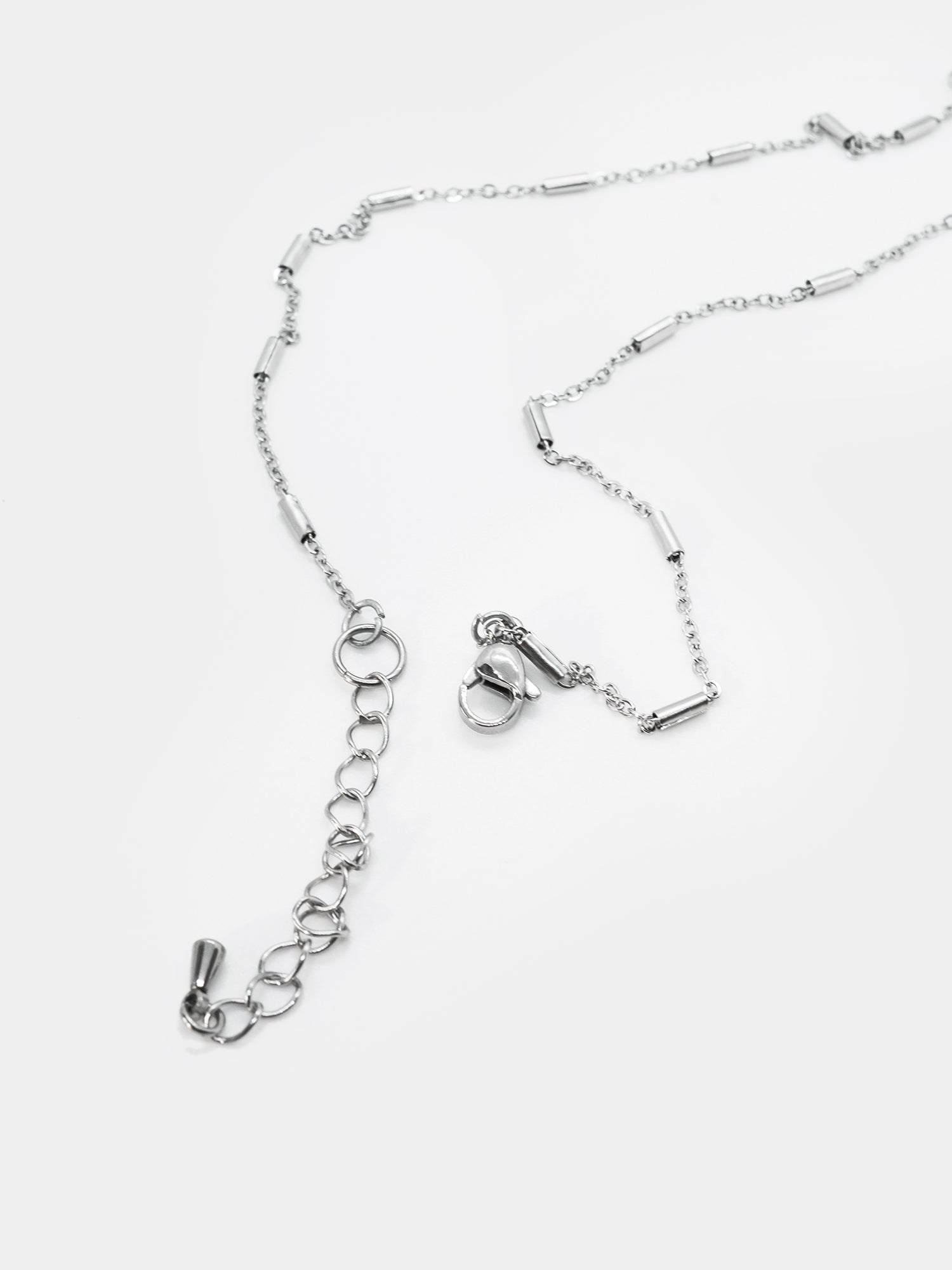 Materiał użyty do zrobienia naszyjnika to stal nierdzewna.