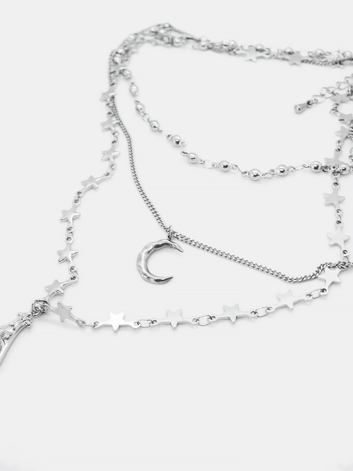 Najkrótszy naszyjnik mierzy 32cm długości, dłuższy - 50cm. Dodatkowo posiada 5cm łańcuszka regulacyjnego, pozwalającego dobrać odpowiedni obwód.