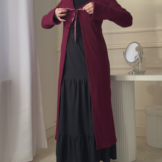 Julia is 180cm tall, 102cm bust, 78cm waist, 102cm hips and is wearing size XS/S.