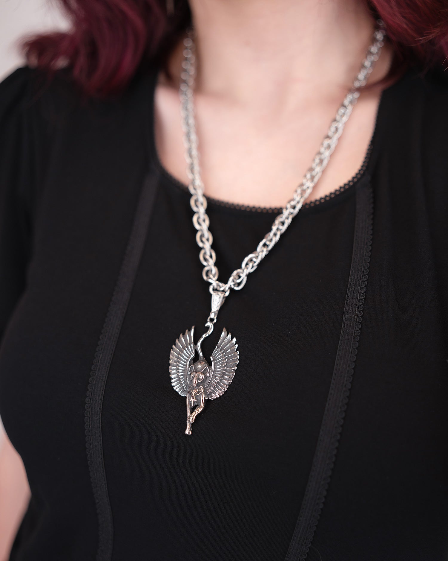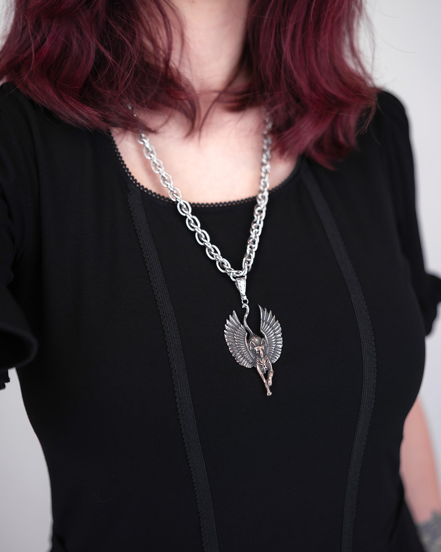 Materiał użyty do zrobienia naszyjnika i zawieszki to stal nierdzewna.