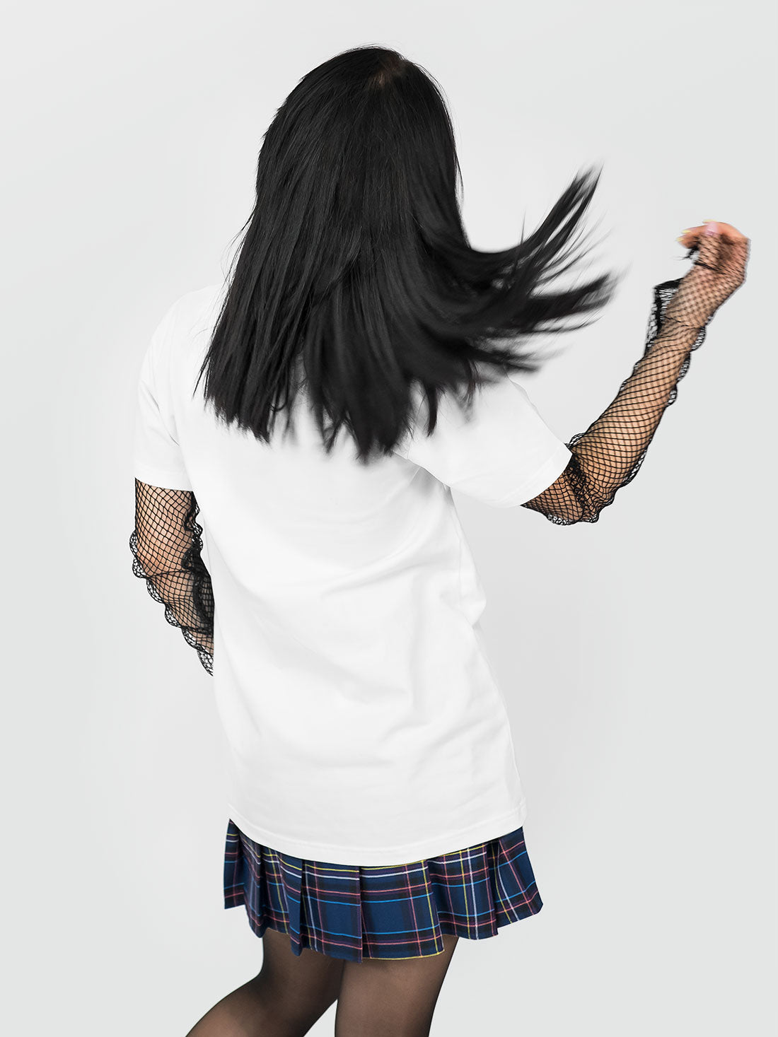 Daria ma 158cm wzrostu, 82cm w biuście, 60cm w talii, 89cm w biodrach i ma na sobie rozmiar S.
