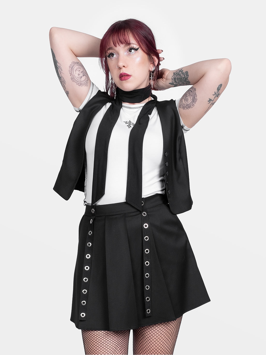 Idealny dodatek do gotyckich stylizacji, który doskonale komponuje się z gorsetami, eleganckimi koszulami i sukienkami w stylu dark romantic.