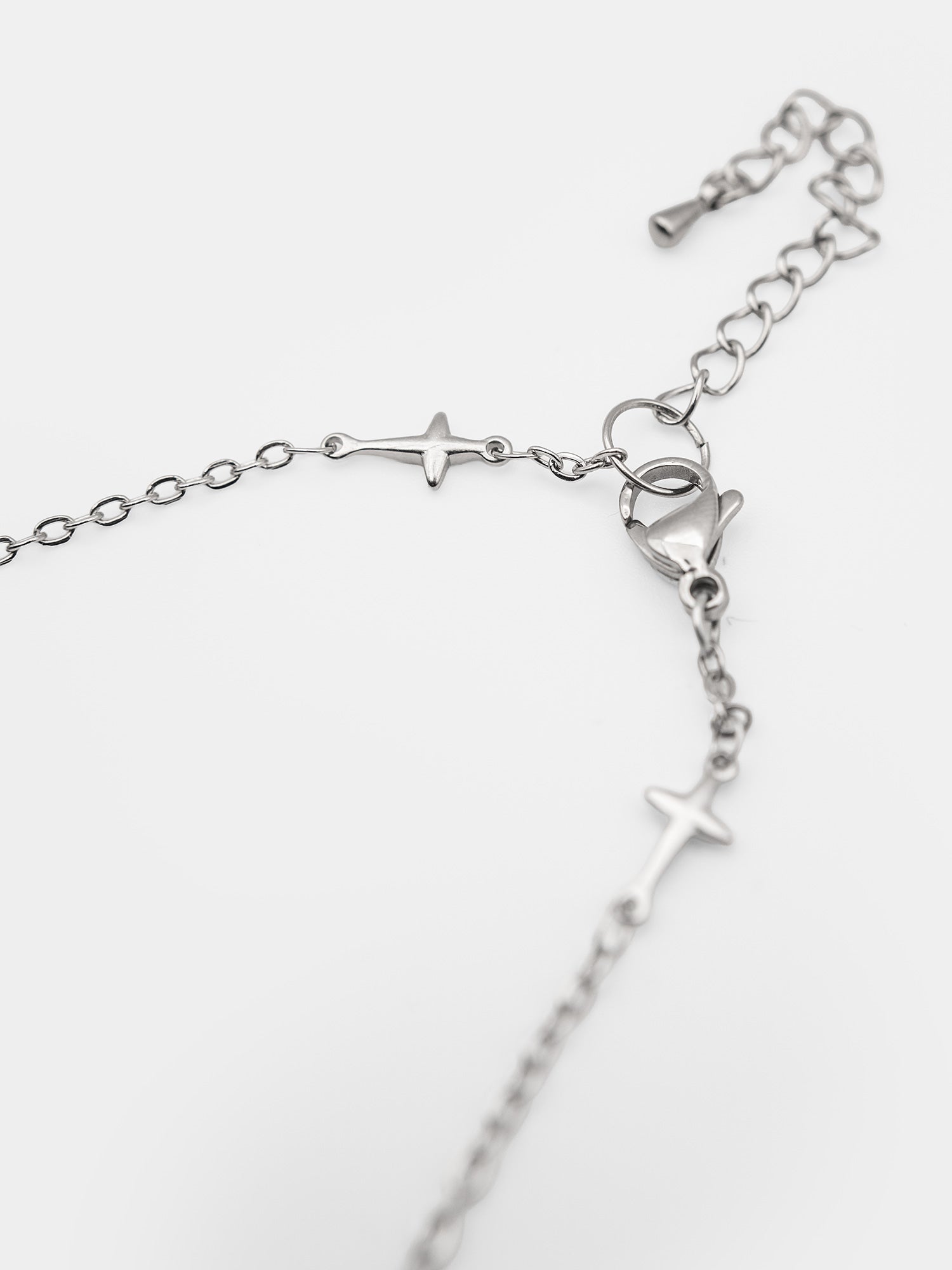 Materiał użyty do zrobienia naszyjnika to stal nierdzewna.