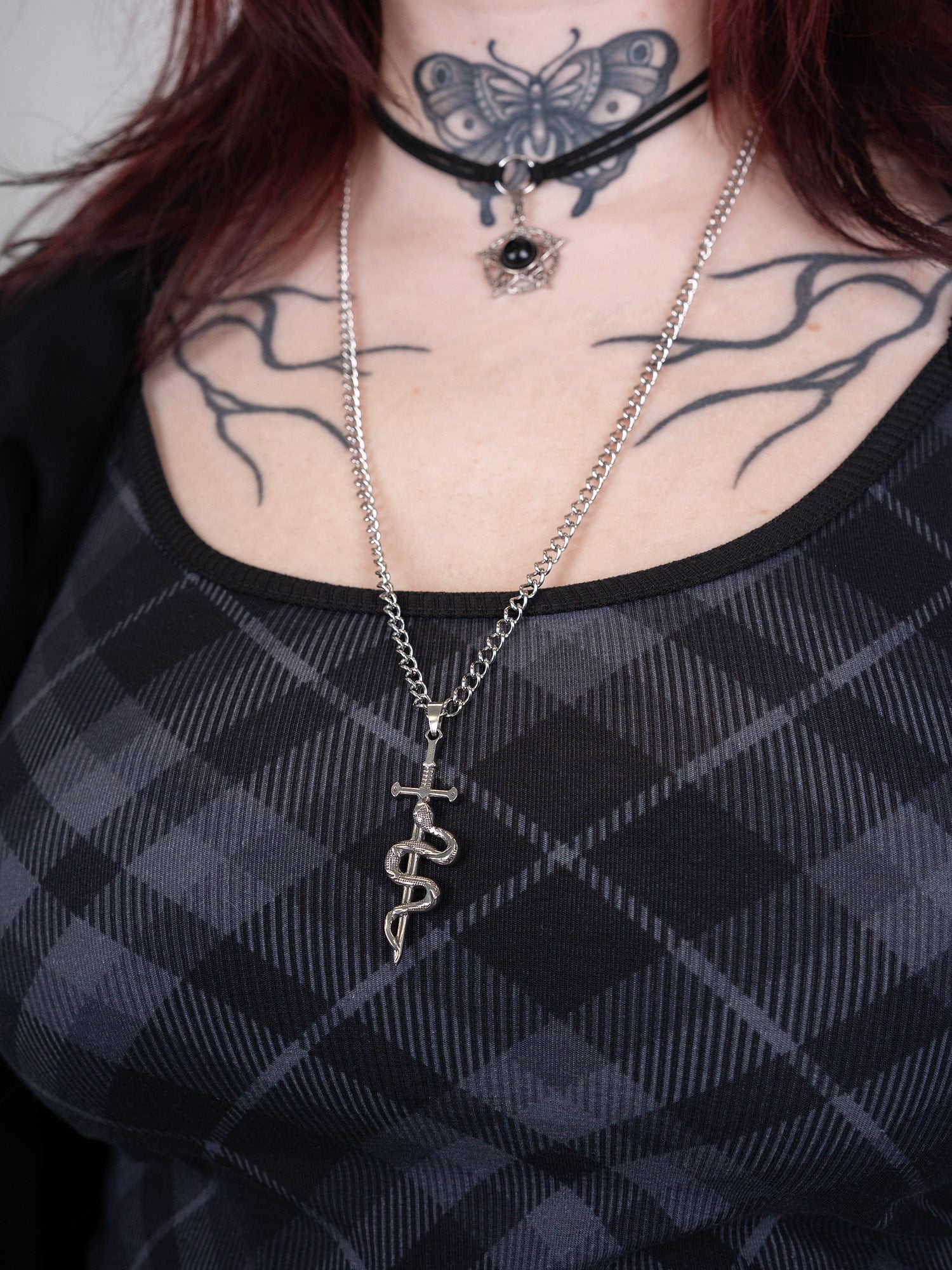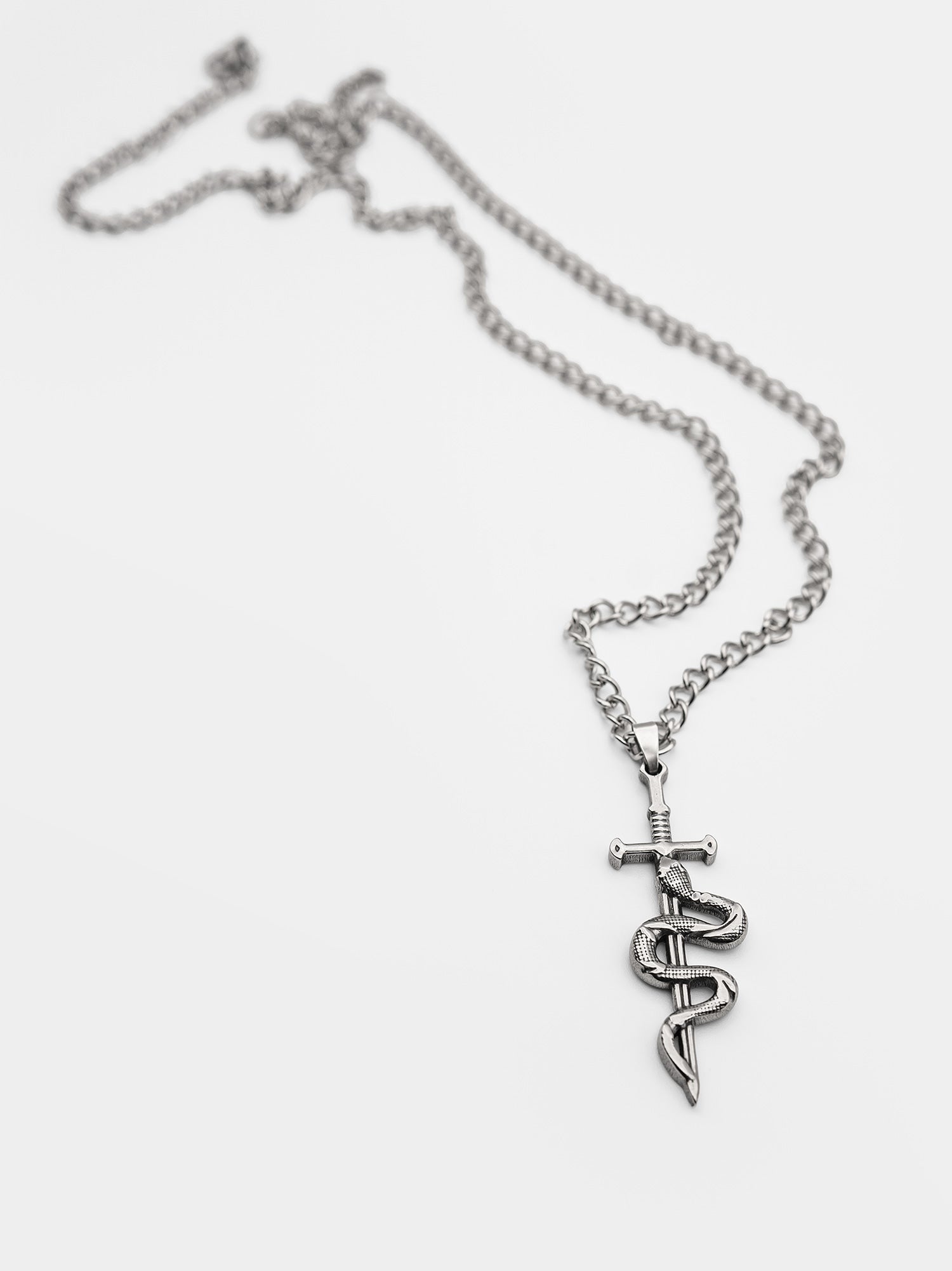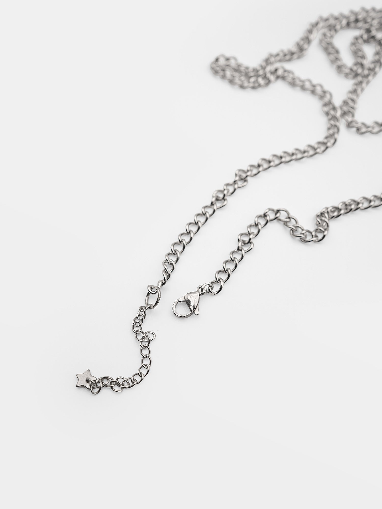 Materiał użyty do zrobienia naszyjnika to stal nierdzewna.