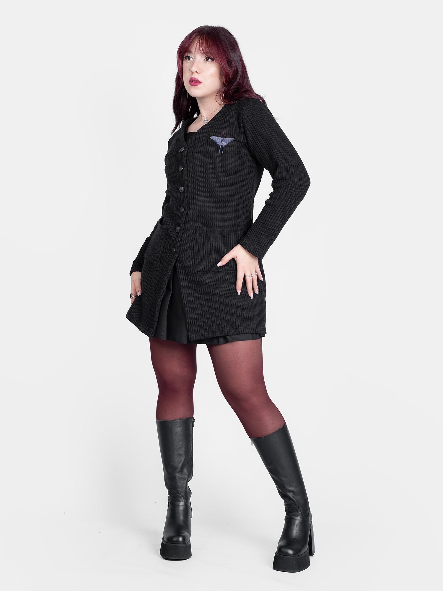 Zuzanna, w czerwonych włosach, ma 172cm wzrostu, 90cm w biuście, 75cm w talii, 93cm w biodrach i ma na sobie rozmiar S.