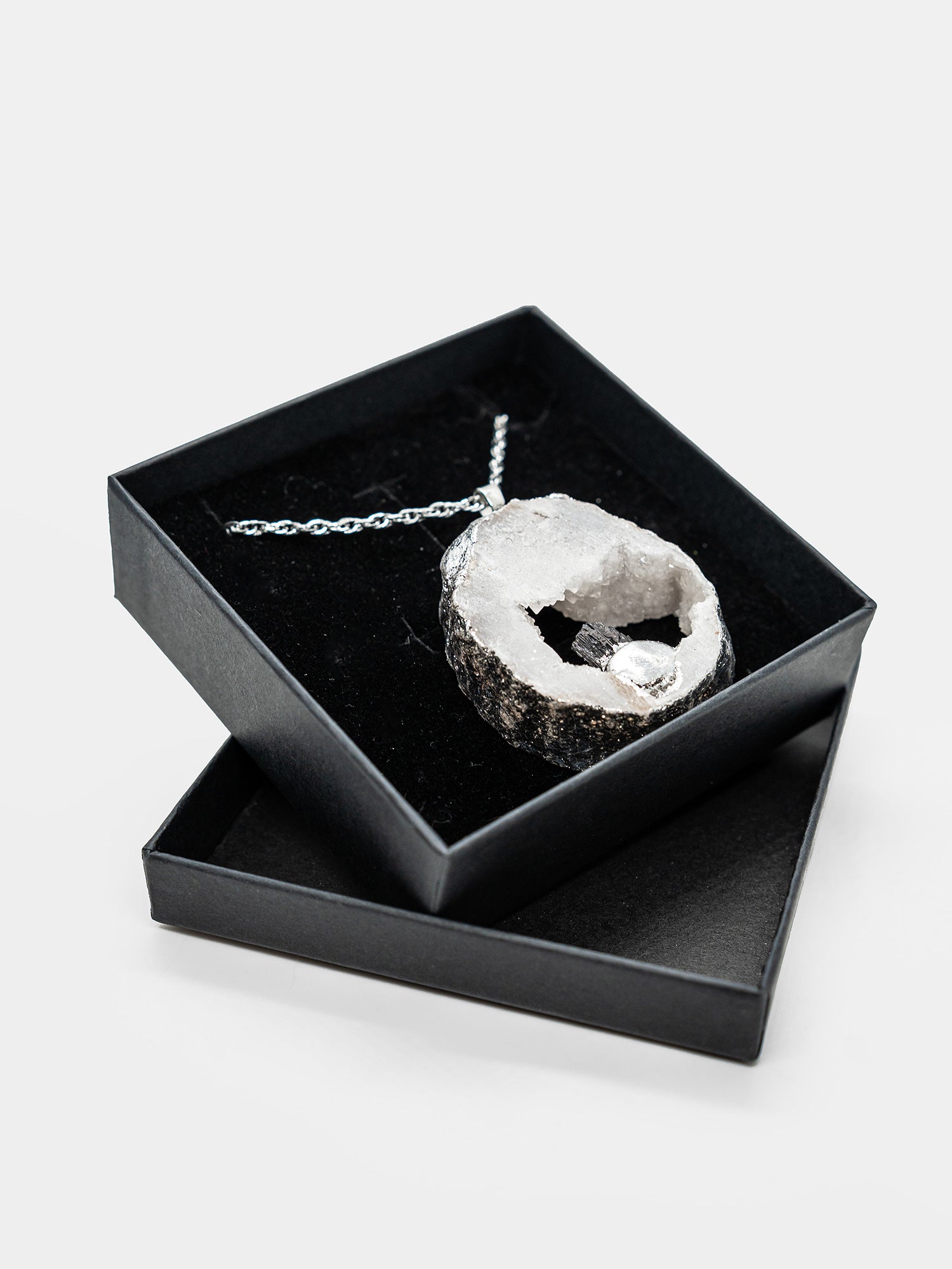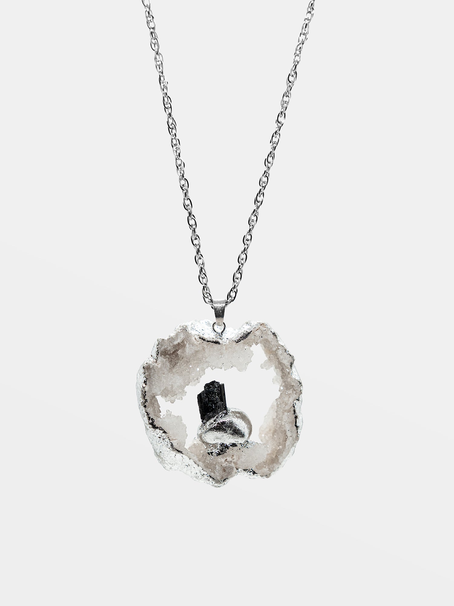 Długi naszyjnik z druzą agatu i turmalinem Hallowed