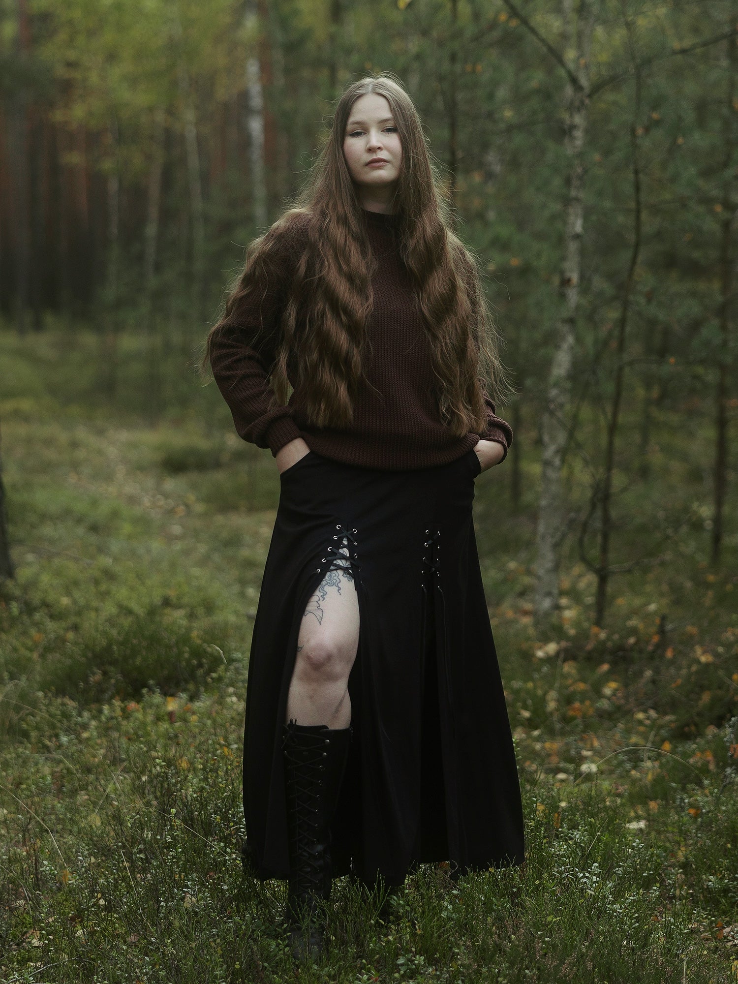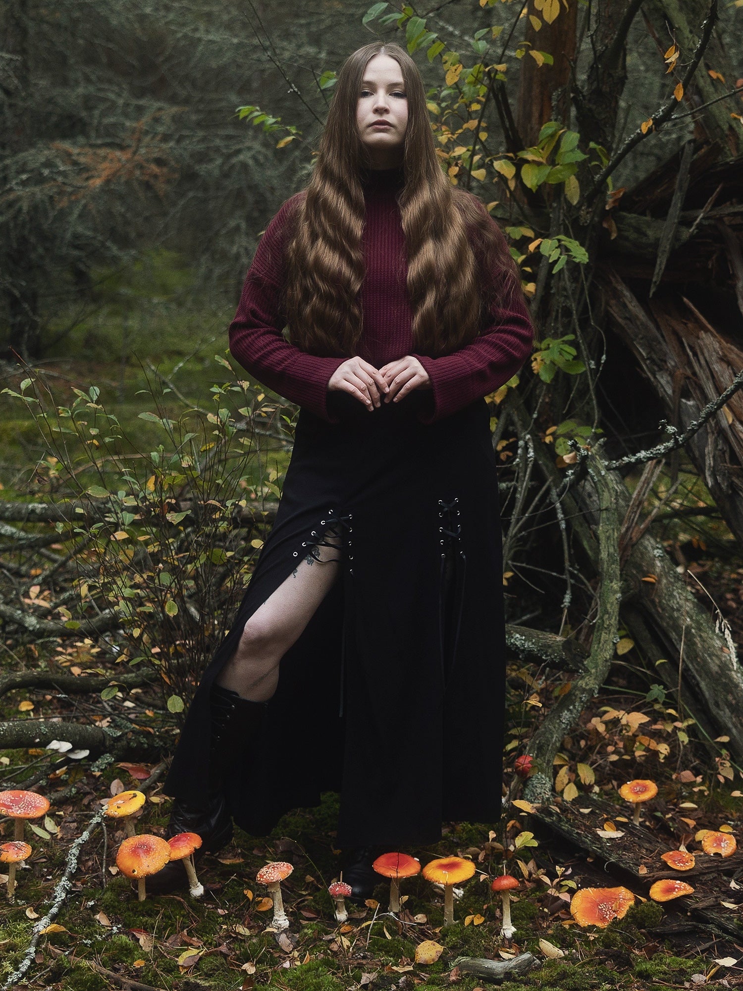 Zuzanna, w czerwonych włosach, ma 172cm wzrostu, 90cm w biuście, 75cm w talii, 93cm w biodrach i ma na sobie rozmiar S.