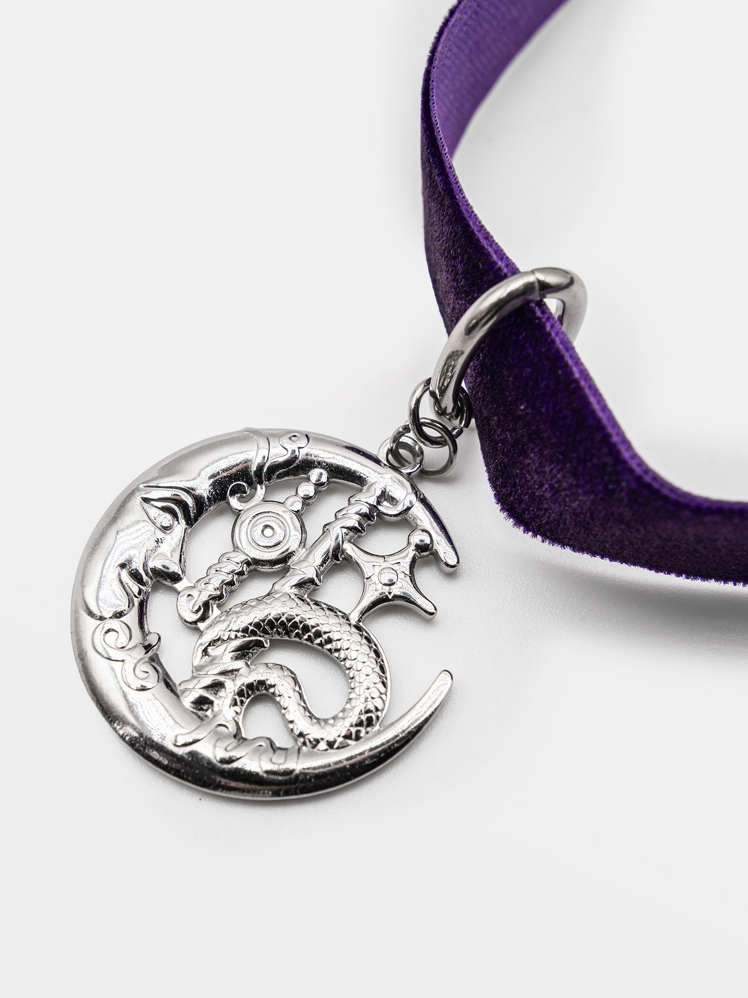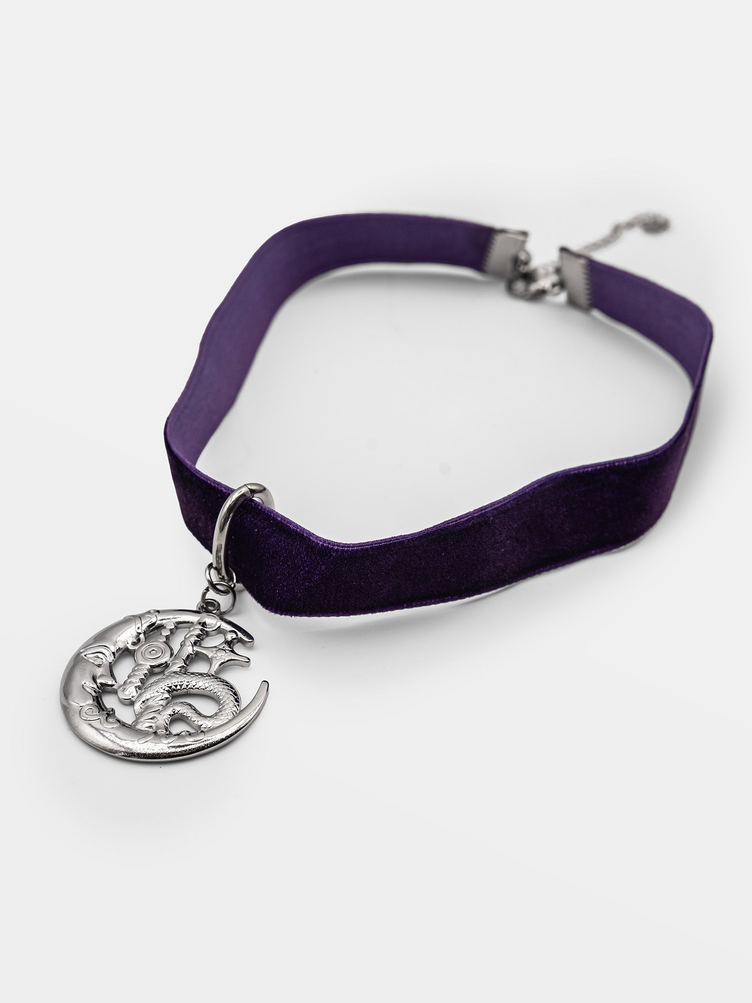 Materiał użyty do zrobienia naszyjnika to welur oraz stal nierdzewna.
