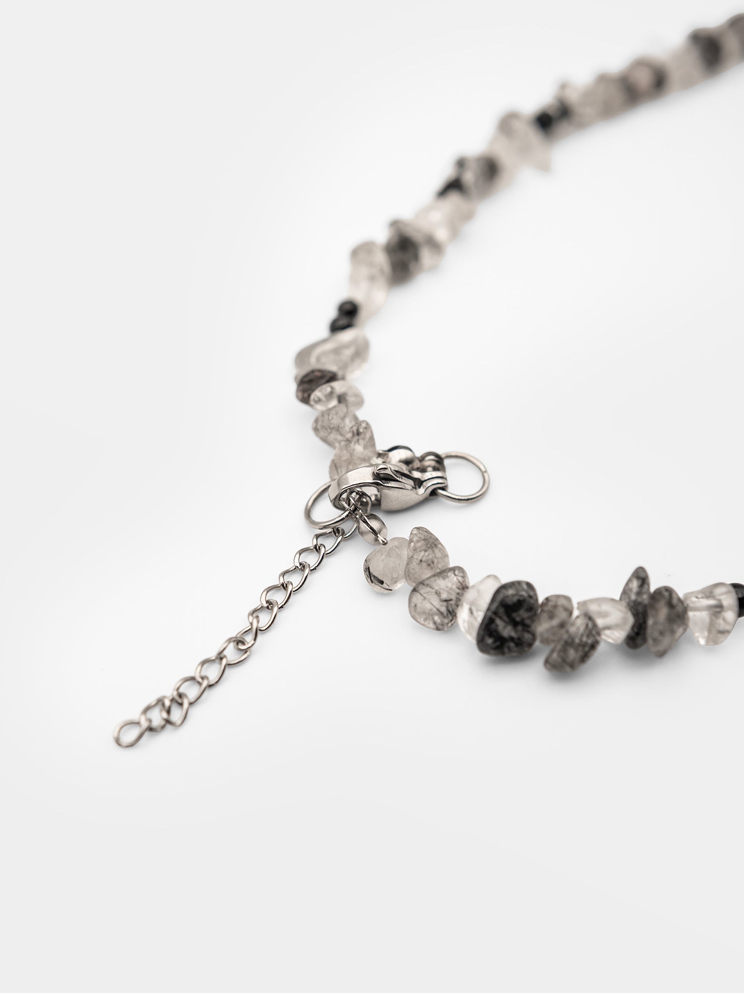 Choker został wykonany ręcznie przez babcię, używając naturalnych kamieni. Na chokerze znajdziesz nieregularne bryłki labradorytu, przedzielone srebrnymi kulkami.