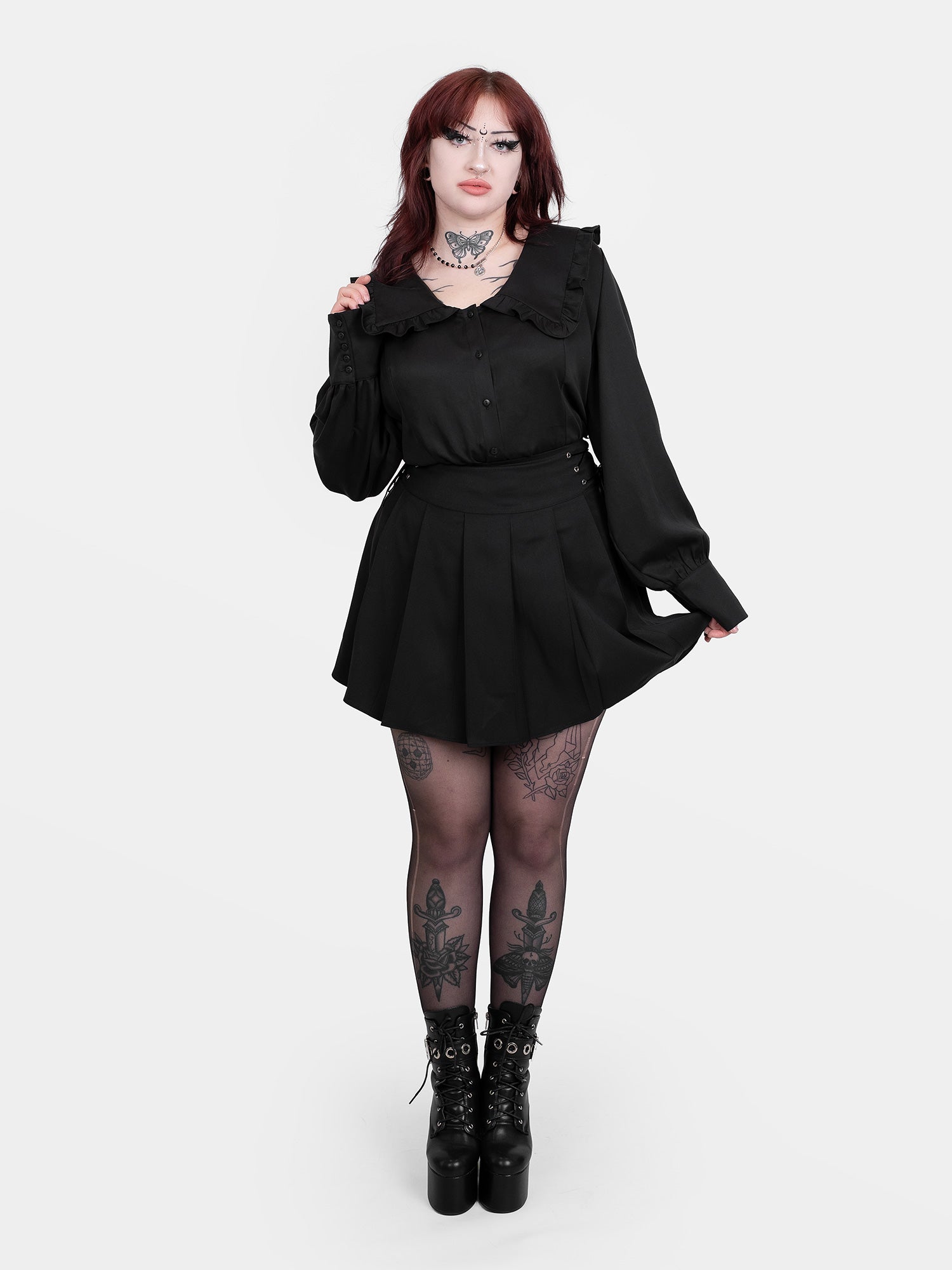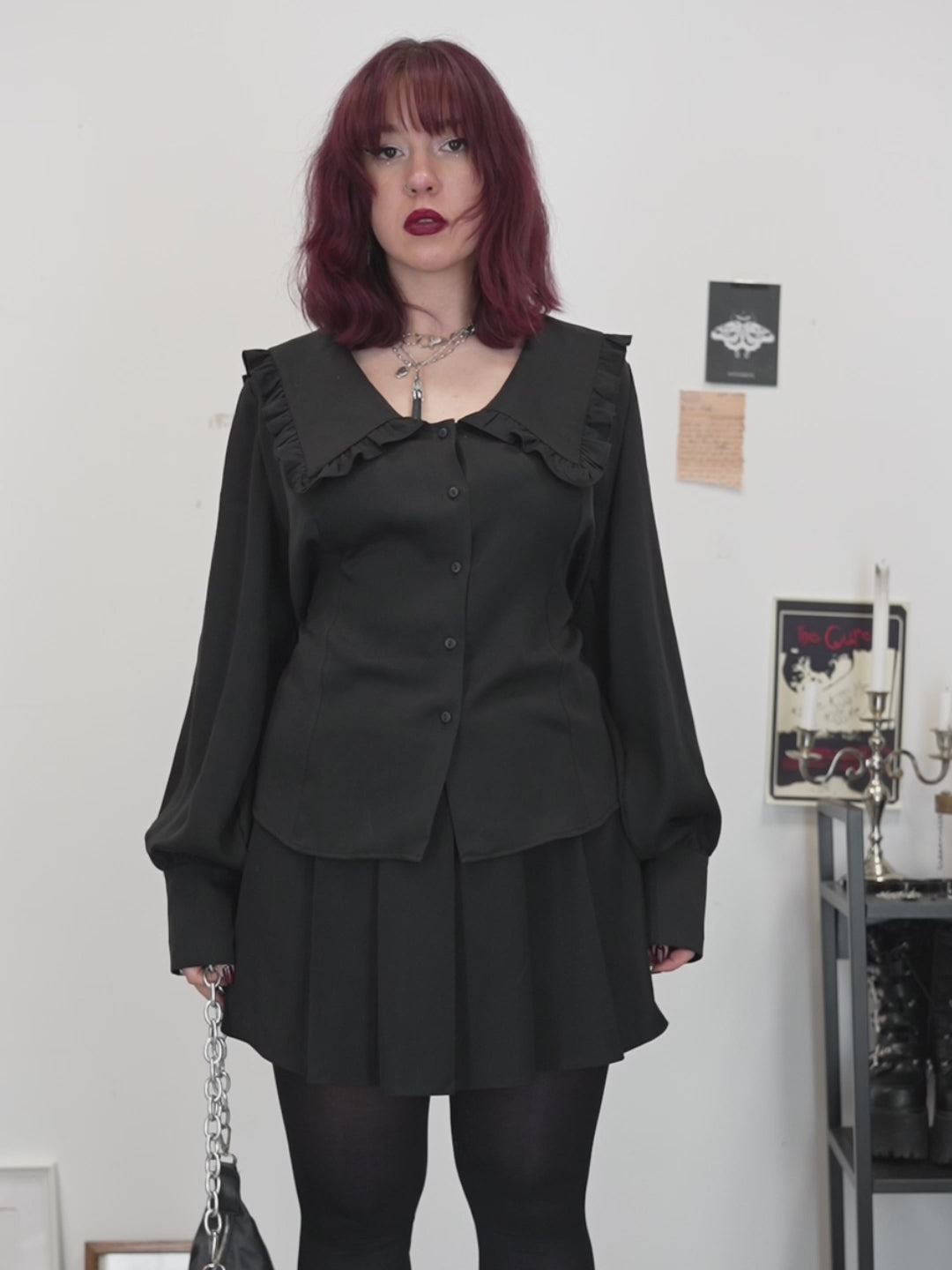 Ola ma 165cm wzrostu, 100cm w biuście, 80cm w talii, 110cm w biodrach i ma na sobie rozmiar L.