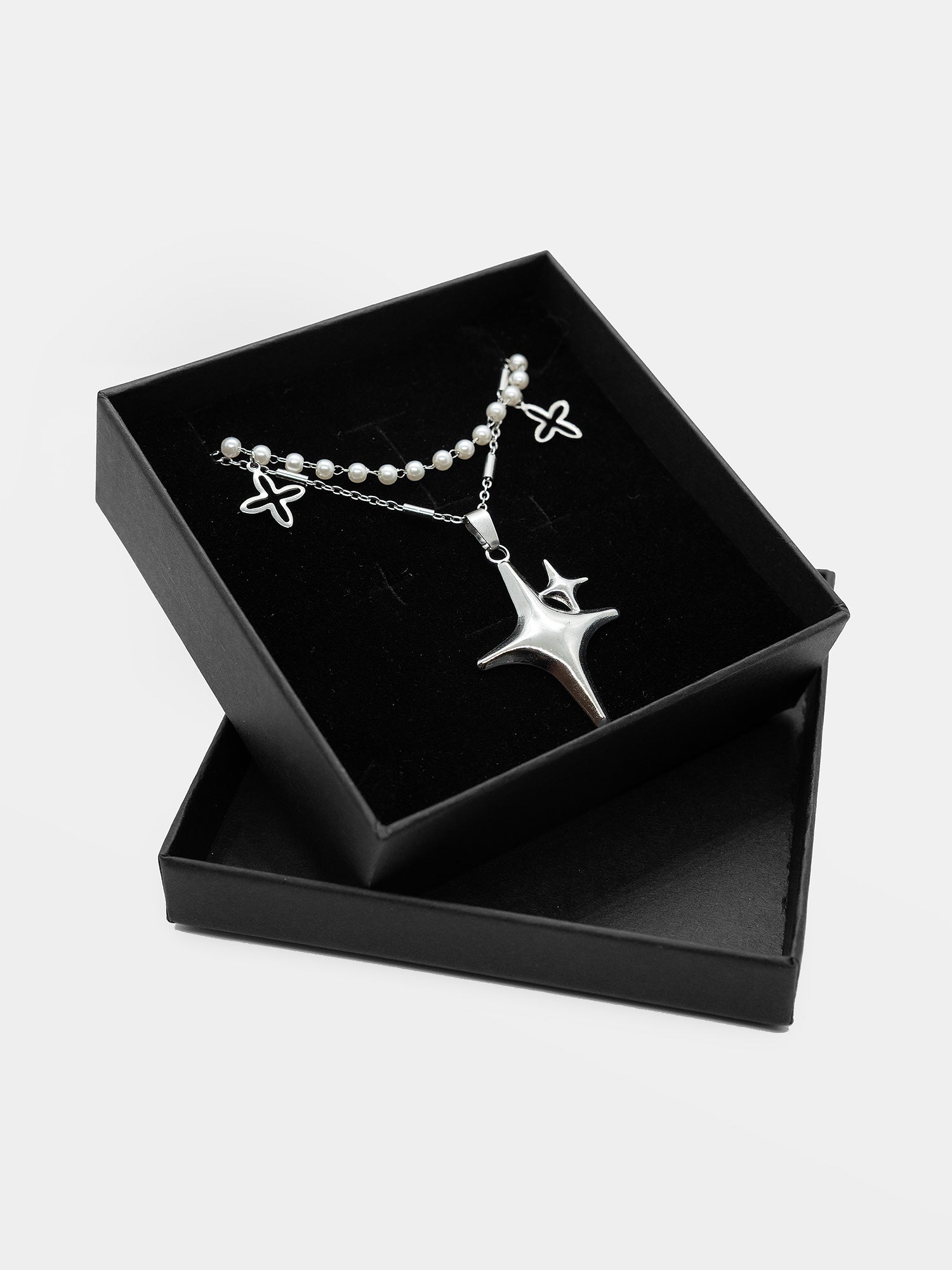 Krótszy naszyjnik mierzy 35cm długości, dłuższy - 40cm. Dodatkowo posiada 5cm łańcuszka regulacyjnego, pozwalającego dobrać odpowiedni obwód.