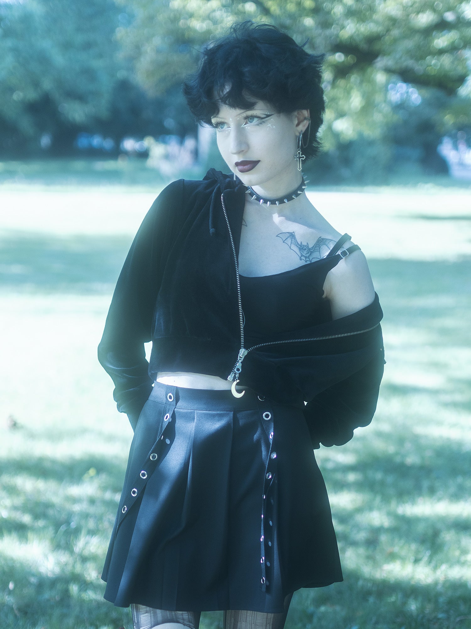 Gabriela ma 165cm wzrostu, 97cm w biuście, 75cm w talii, 100cm w biodrach i ma na sobie rozmiar M.