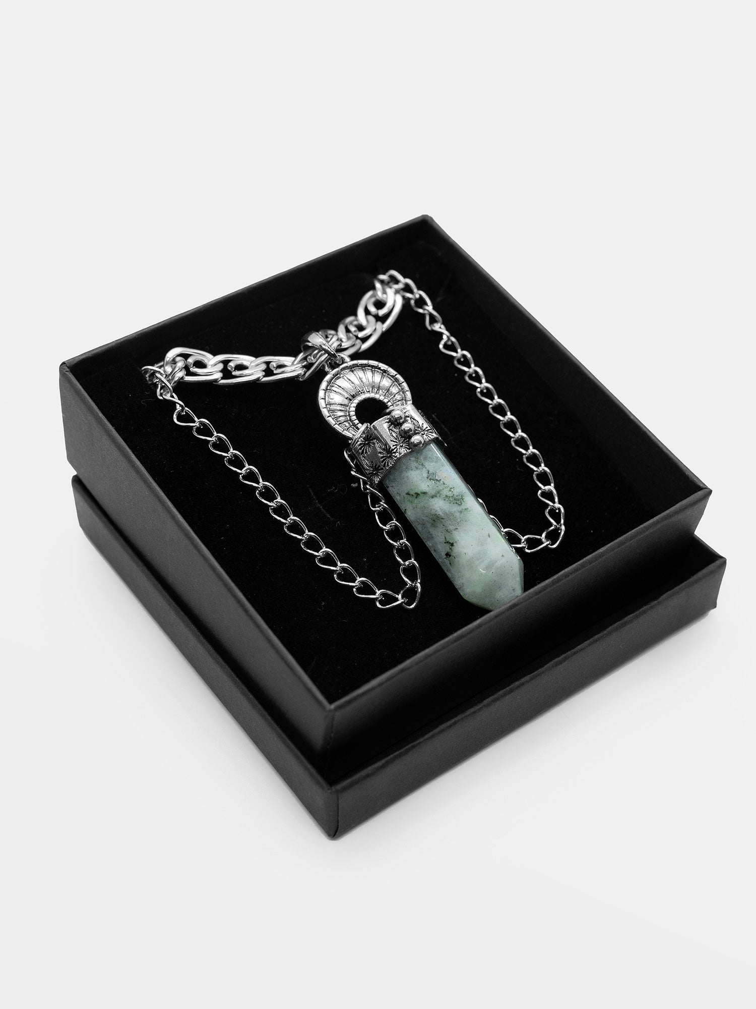 Zawieszka z labradorytem ma wymiary ok. 62 x 17mm.